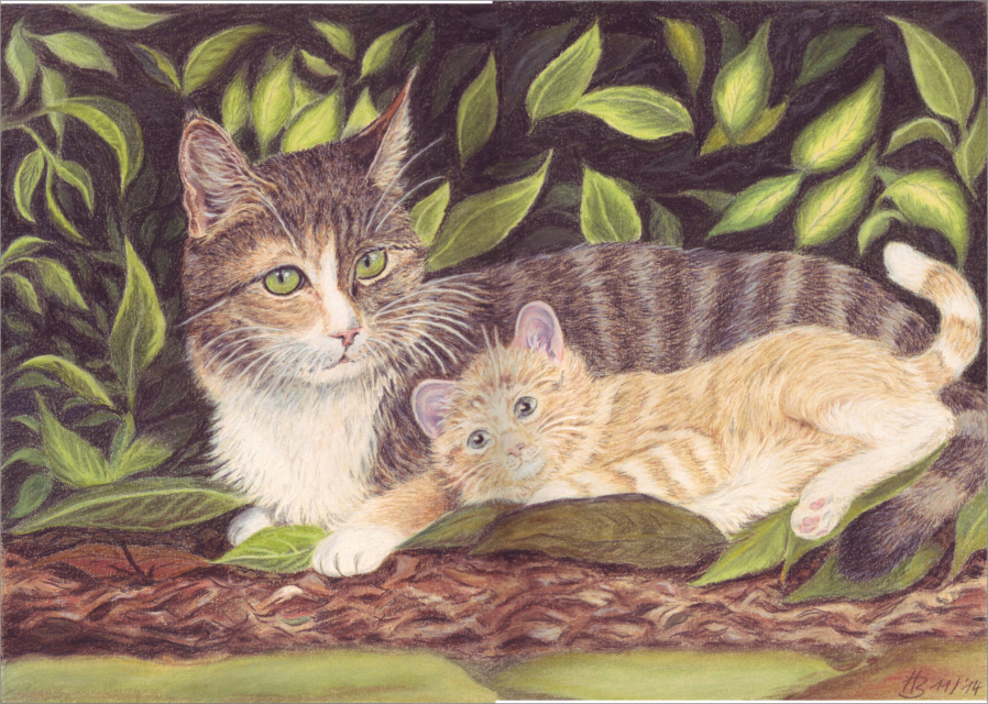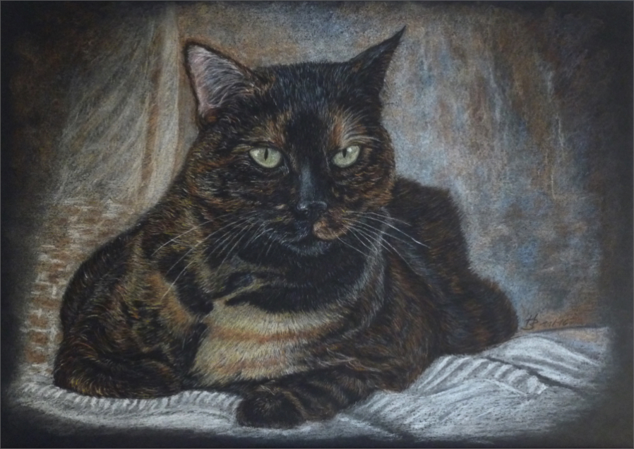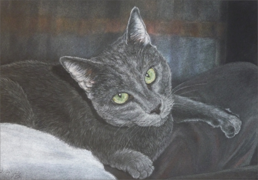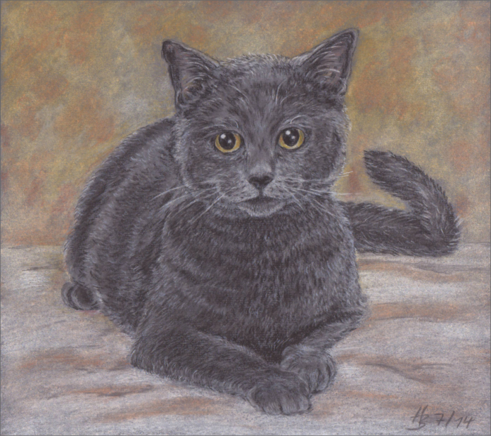 Bisher habe ich Katzen ausschließlich mit Pastellkreiden gemalt. Ich habe noch keine Arbeiten in Kohle/Graphit oder Acrylfarben zu zeigen.